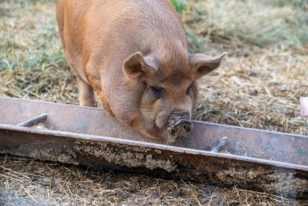 The digestive system of a pig is unique in that it metabolizes food very quickly through one stomach in a process that takes about four hours. A cow takes 24 hours to digest what’s eaten, and it is able to get rid of excess toxins during the digestive process. The pig’s digestive system doesn’t allow for this, and the toxins are carried into the fat cells and organs of the pig itself.
